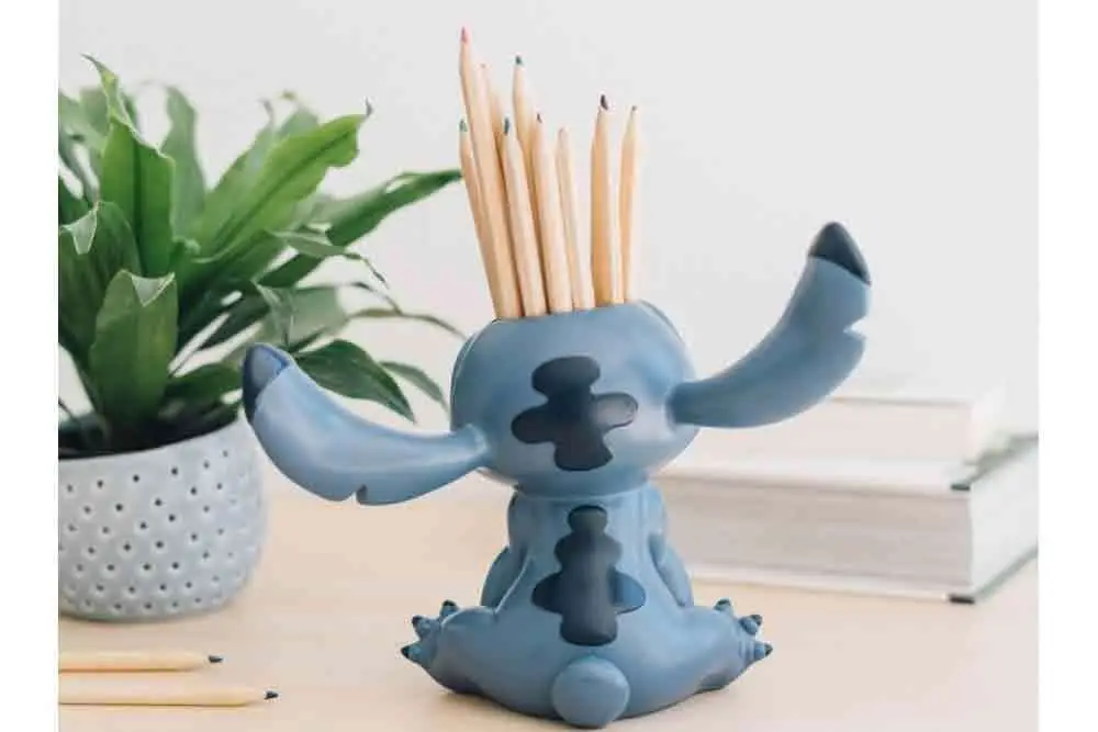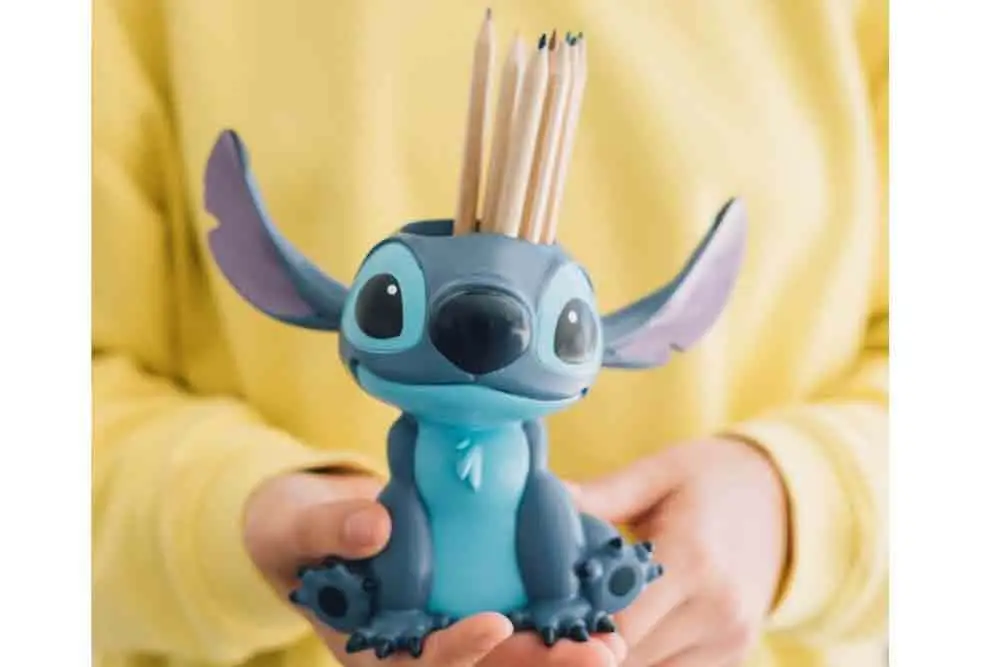 Portapenne ufficiale Stitch ideale per la scrivania. Realizzato in resina e dipinto a colori. Misure: 195 x 125 x 165 mm.