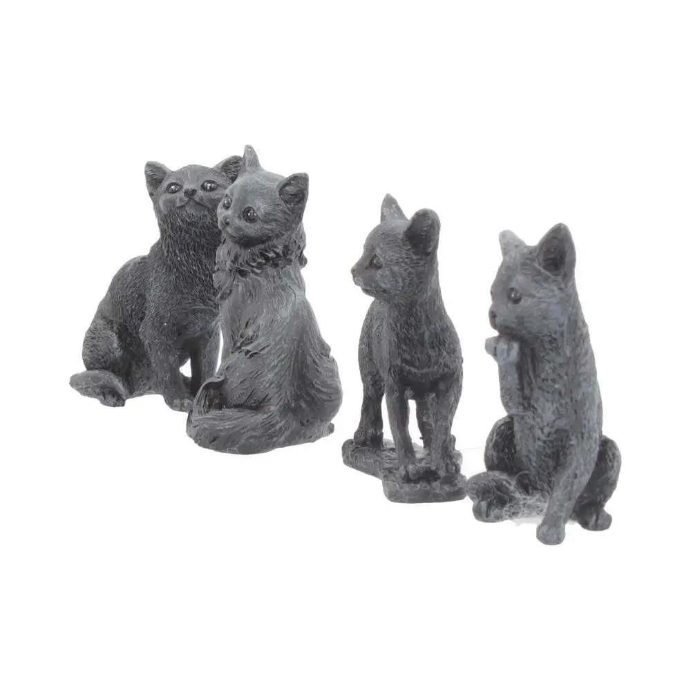 Display da banco con 24 scatole contenenti una mini figure di un gatto nero porta fortuna in resina di circa 9 cm dipinta a mano. I soggetti sono casualmente assortiti.