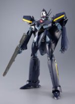 Introducing a stealth Valkyrie! The VF-17S is making its first appearance in DX Chogokin since its original broadcast. DX Chogokin is a 3D model based on its evolved form, the VF-171. True to its name, “Stealth Valkyrie,” it recreates the slimness of its fighter form. Add this Macross 7 suit to your collection, following the VF-19 CUSTOM, due for release in October.
