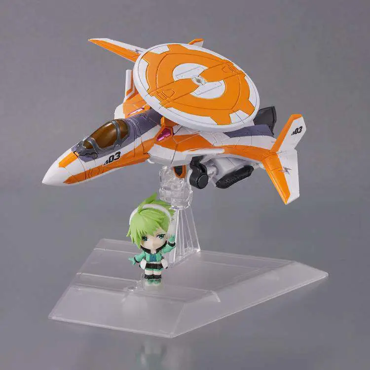 si tratta di magnifici mecha deformed, trasformabili ed articolati, tratti da celebri licenze (partiamo col botto: MACROSS!!), in accoppiata con mini figure di pochi cm che rappresentano personaggi tratta dalla serie.