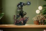 Inspired by the iconic Planet Hulk storyline, the Gladiator Hulk Maquette measures a monstrous 26″ tall as the jade giant smashes a helpless alien fighter into the dirt of the Sakaarian coliseum. Barbed tentacles and claws are no match for the giant gladiator as he pummels his extraterrestrial enemy into a broken stone pillar on top of the battleground base. His alien enemy features a detailed design, with red textured skin and a multitude of glistening eyes.