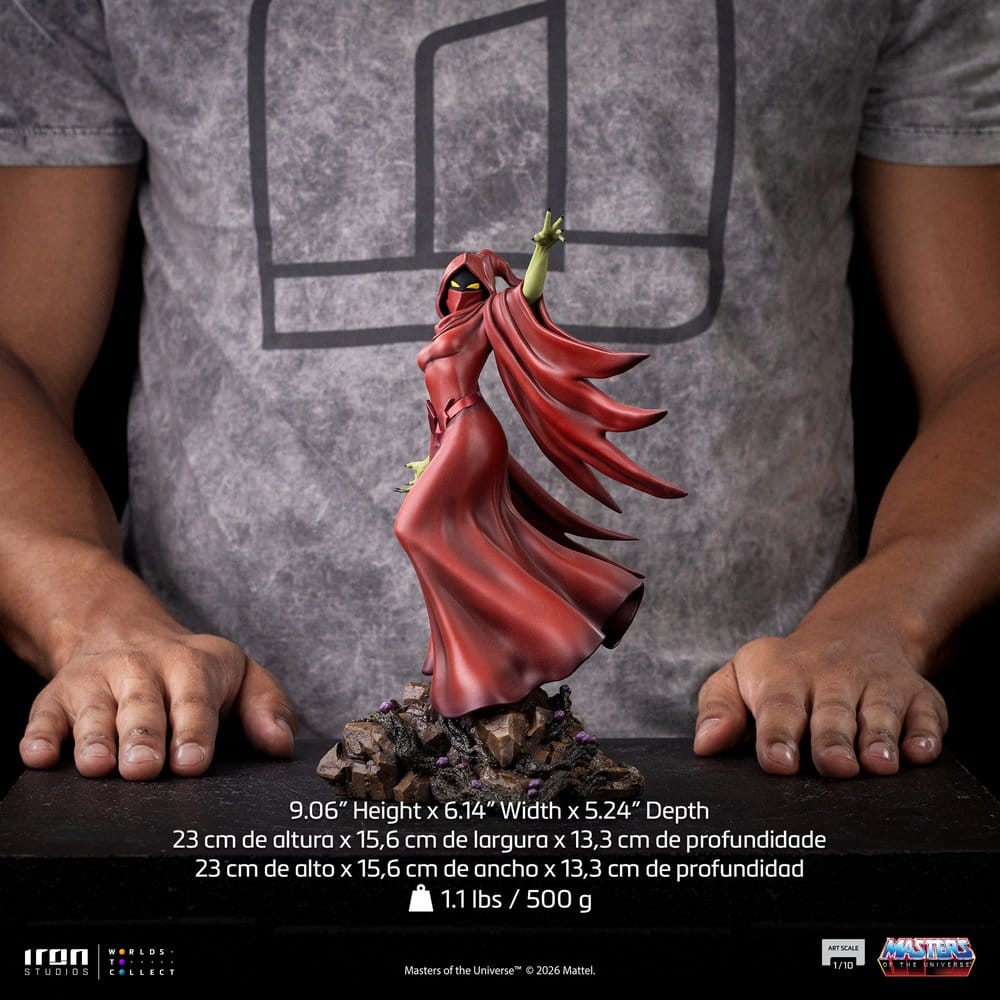 Produced by Iron Studios, this Art Scale 1/10 statue showcases refined sculpting and meticulously hand-painted finishes. From the flowing robes and concealed visage to the dramatic pose and themed base, every element is crafted to convey menace, intrigue, and the dark fantasy aesthetic that defines Eternia’s most dangerous spellcasters.