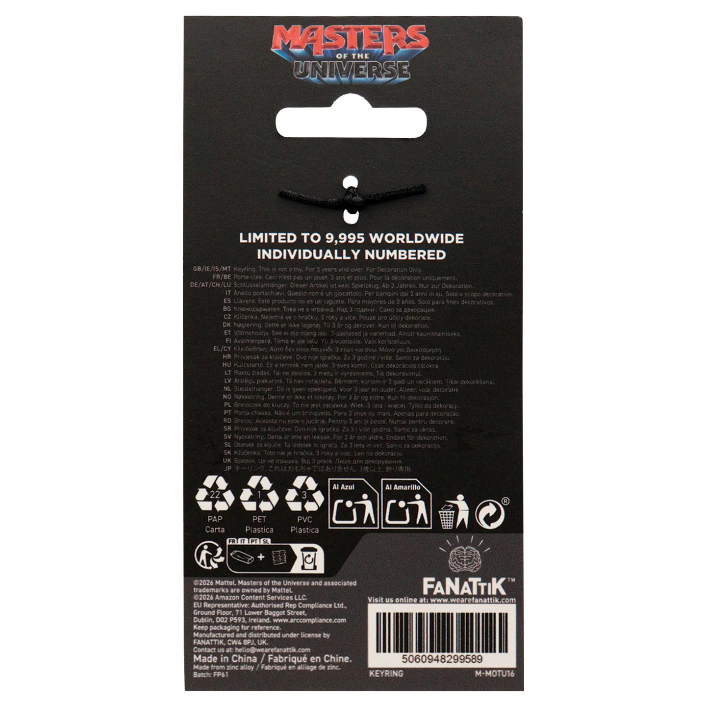 Questo portachiavi che lo raffigura, come visto nel film Masters of the Universe® del 2026, è rifinito in smalto colorato ed è limitato a 9.995 pezzi in tutto il mondo.