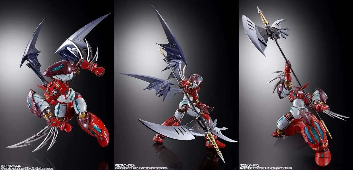 Lo Shin Getter 1 viene lanciato da Tamashii come prima uscita della serie “Metal Build Dragon Scale”! la serie presenta un nuovo meccanismo, ali regolabili e una grande quantità di parti d’effetto. Il robot può assumere una gamma di pose estreme mai viste! Il design delle ali, il Tomahawk trasformabile, lo Shin Getter 2 e lo Shin Getter 3 che spuntano da ogni parte, conferiscono a questo fantastico robot una personalità unica. Come sempre l’uso del metallo rende l’oggetto un vero must. E’ possibile esporre la struttura interna a tre strati del Getter rimuovendo lo strato esterno del modello. Il Getter Beam sull’addome può regolare la direzione di tiro grazie allo snodo sferico alla base; un effetto Getter Beam è incluso anche per la testa, con una lussuosa finitura che incorpora vernici perlate e sfumate. Anche il Getter Tomahawk ha un meccanismo variabile e può essere trasformato in tre forme diverse. È inclusa anche una base per esporre questo potente mecha in volo.