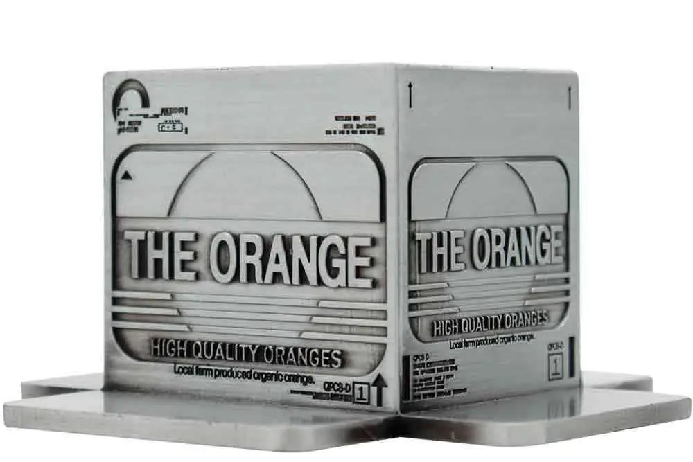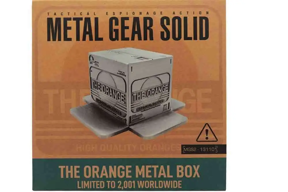 Simbolo della serie di giochi Metal Gear Solid, l’umile scatola di cartone è stata ampiamente utilizzata da Raiden come copertura per muoversi furtivamente in Metal Gear Solid 2, e questa versione viene replicata qui in forma metallica. Ogni scatola con licenza ufficiale è pesantemente goffrata e limitata al 2001 in tutto il mondo (un riferimento alla data di uscita iniziale di Metal Gear Solid 2). Dimensioni 111x105x59 mm