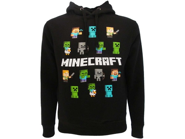 MINECRAFT – PERSONAGGI – Felpa con Cappuccio Nero Taglia M – Cotone con Tasche Anteriori