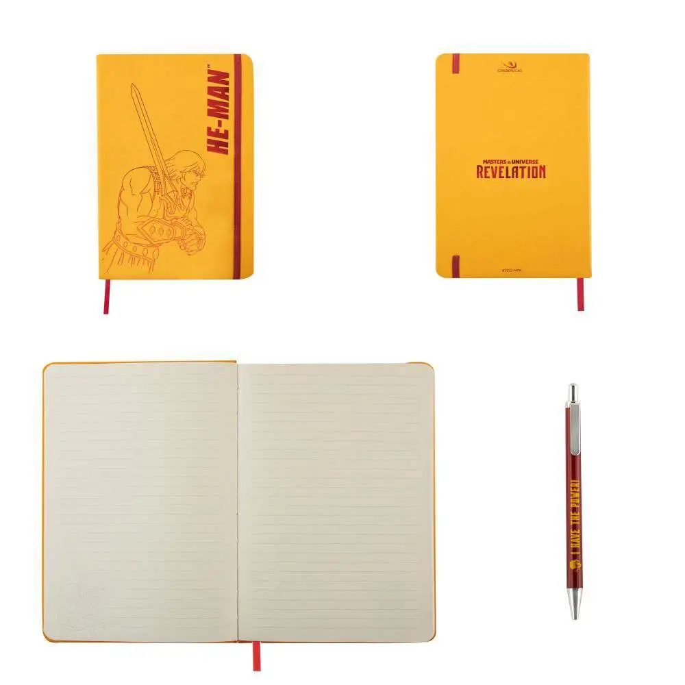 Set cancelleria che include 1 taccuino e 1 penna coordinati a tema Masters of The Universe.