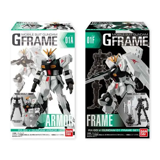 Ognuno di essi sarà disponibile in due versioni: nel SET A trovate un frame-scheletro non articolato e la relativa armatura del mobile suit. Nel SET B trovate un mini busto, un frame-scheletro super articolato e le armi del relativo mobile suit (ma non l’armatura)