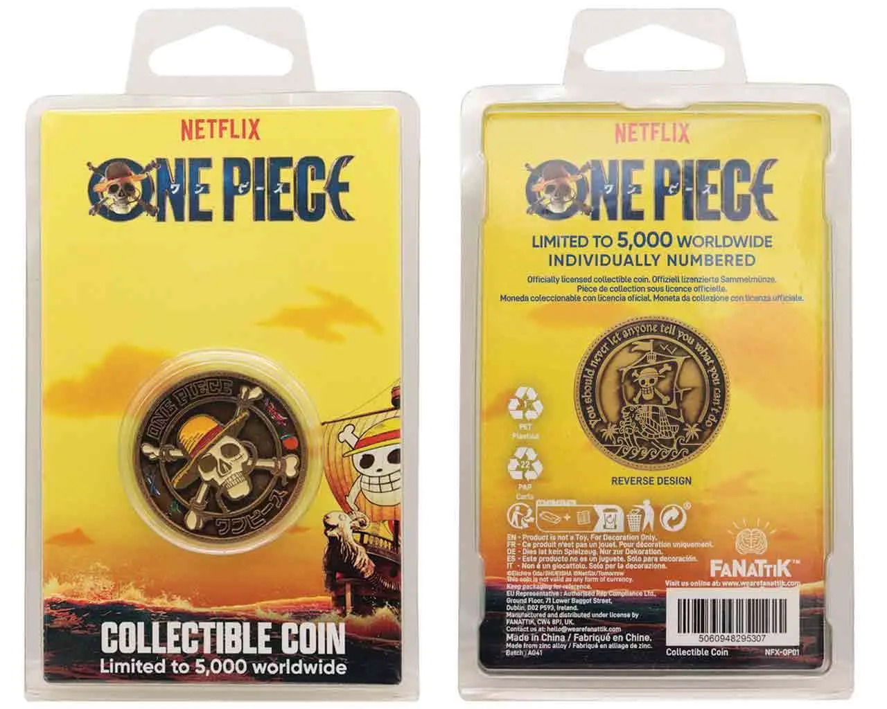 “You should never let anyone tell you what you can’t do” – “Non dovresti mai permettere a nessuno di dirti cosa non puoi fare”, sono le sagge parole di Luffy a Koby e sono impresse anche sul retro di questa moneta da collezione in edizione limitata. Le parole circondano la Going Merry, la prima nave di Luffy, e il fronte presenta il Jolly Roger di One Piece. Queste monete con licenza ufficiale sono limitate a 5.000 esemplari in tutto il mondo, sono numerate singolarmente e vengono fornite in una confezione da esposizione.