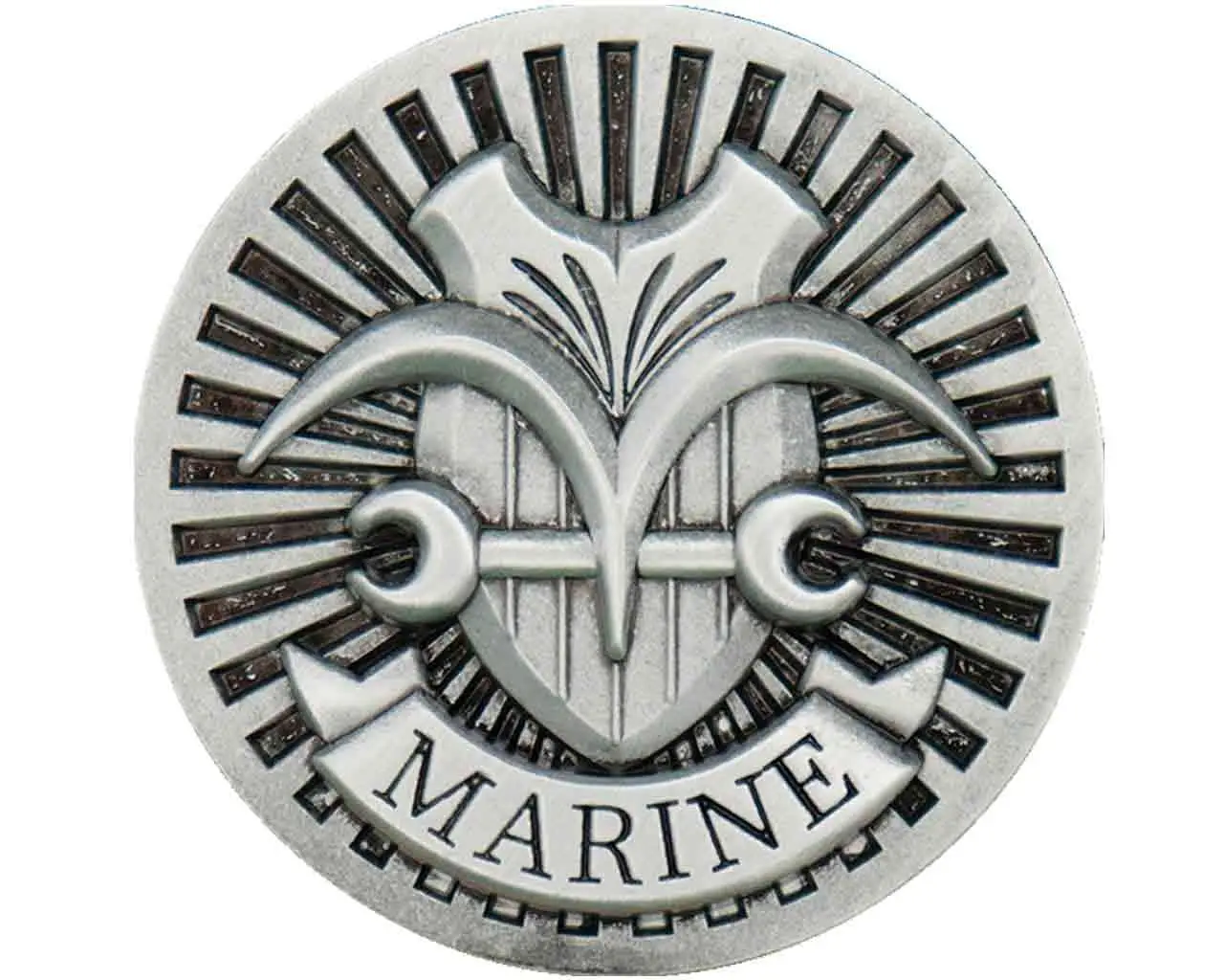Questa spilla in edizione limitata presenta il logo della Marina, è numerata individualmente come uno dei 5.000 esemplari in tutto il mondo e ha un diametro di 42 mm.