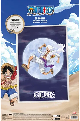Questo bellissimo poster effetto 3D mostra Monkey D. Rufy nella sua forma Gear 5, tra i momenti più incisivi di One Piece.