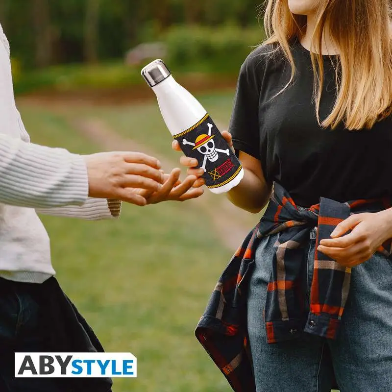 Sali a bordo della Thousand Sunny! Diventa un membro a pieno titolo della ciurma di Cappello di Paglia sotto il comando del capitano Monkey .D. Rufy! Unisciti ai tuoi futuri nakama con questa bottiglia d’acqua One Piece di ABYstyle.