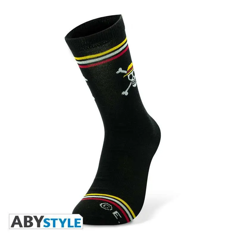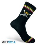 Questi calzini One Piece di ABYstyle rappresentano l’emblema della Ciurma di Cappello di Paglia. – Materiale: cotone, poliestere ed elastan