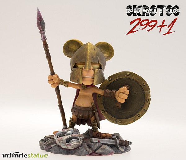 RAT-MAN – SKROTOS 299+1 – Statua in Resina 37 cm Infinite Collection n.5 – Infinite Statue.Skrotos è uno spartano, il fratello minore di Kretone, è uno dei 299 coraggiosi capitanati da Leonida, ma è anche stato scelto per vigilare un sentiero di capre… Skrotos è l’eroe che è in tutti noi, quello che se la fa sotto quando è il momento giusto; e per lui è sempre il momento giusto.Tratto dalla famosa parodia di “300”, 299+1 é uno dei capolavori di Leo Ortolani.Direttamente dalla copertina del mitico numero 62 di Rat-Man un piccolo grande lavoro di arte scultorea si aggiunge a “The Infinite Collection” con tutti gli onori che si merita. Da oggi la storia della battaglia delle Termopili non sarà più la stessa……EDIZIONE LIMITATA (999 pezzi)