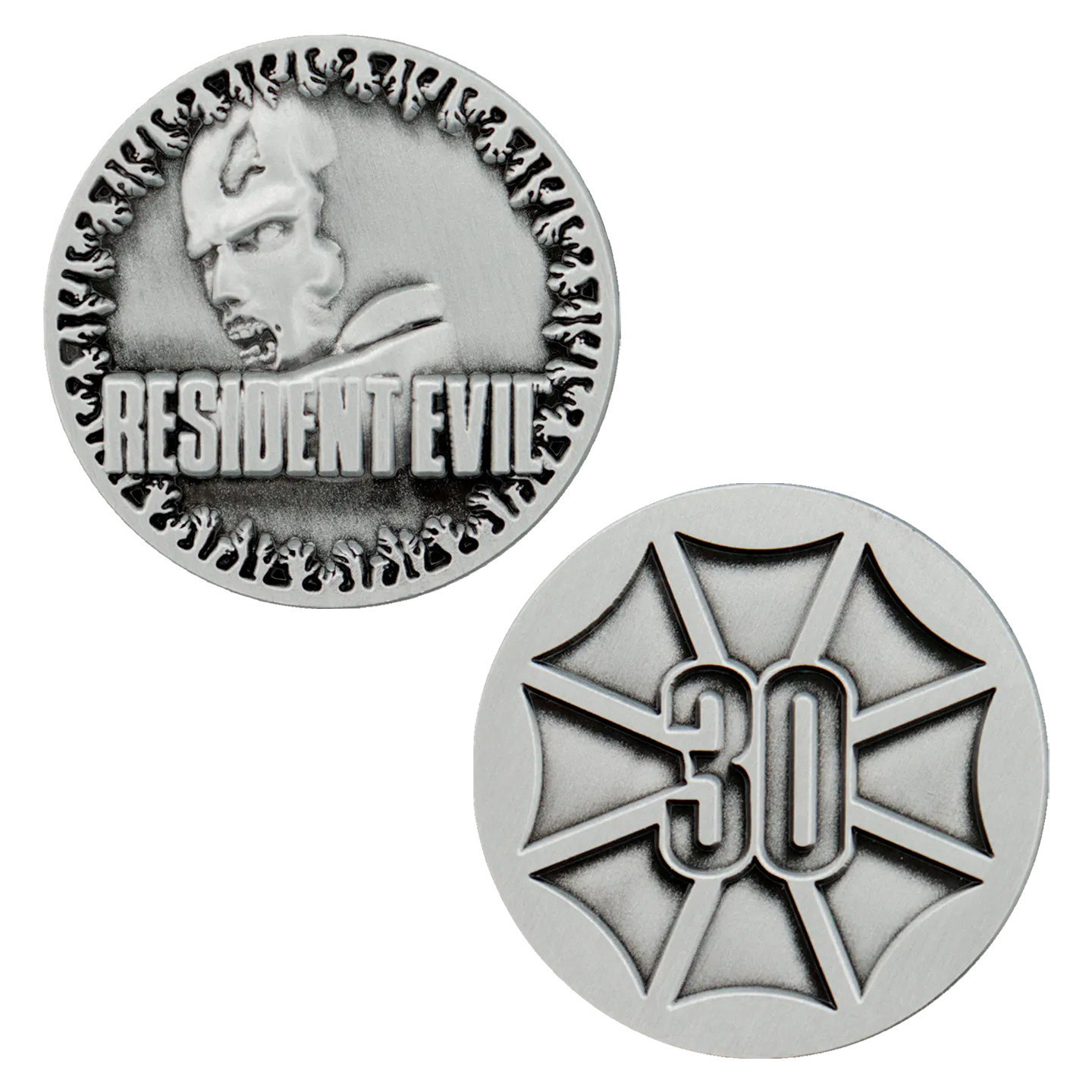 Celebra 30 anni di Resident Evil con questa moneta da collezione in edizione limitata ufficialmente licenziata, creata per rendere omaggio a uno dei franchise survival horror più influenti nella storia dei videogiochi.