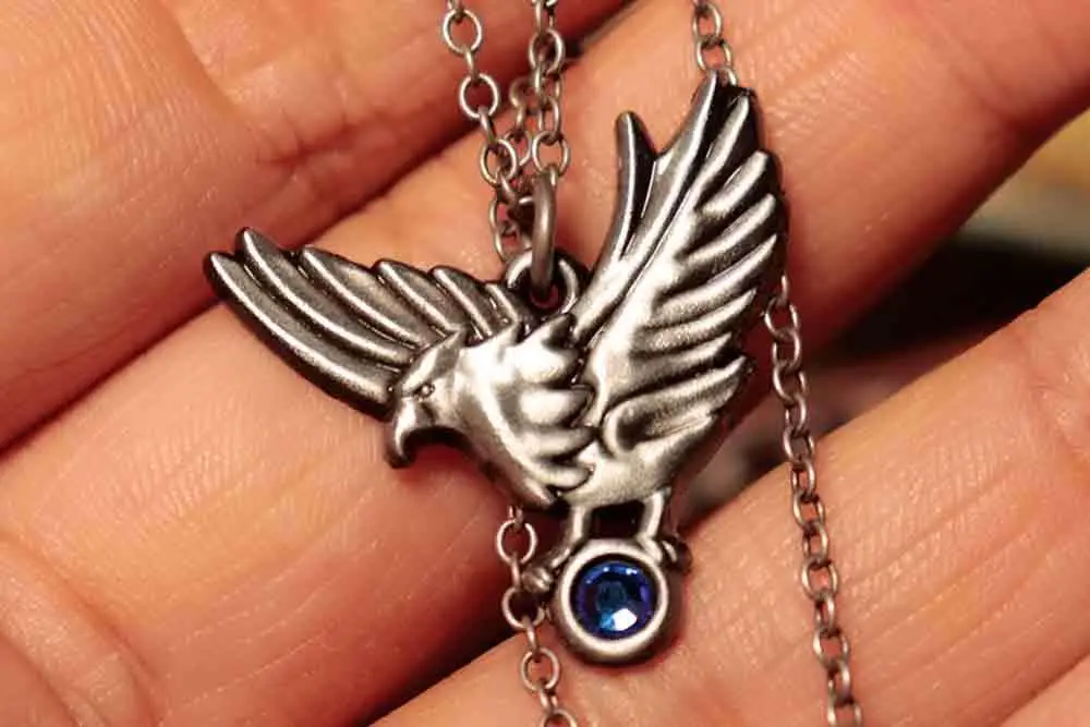 Questa inconfondibile collana con aquila è stata indossata da Ashley Graham, figlia del Presidente Graham, che è stata rapita. Con dettagli elaborati, questa collana di metallo presenta anche un piccolo gioiello blu portato dall’uccello.