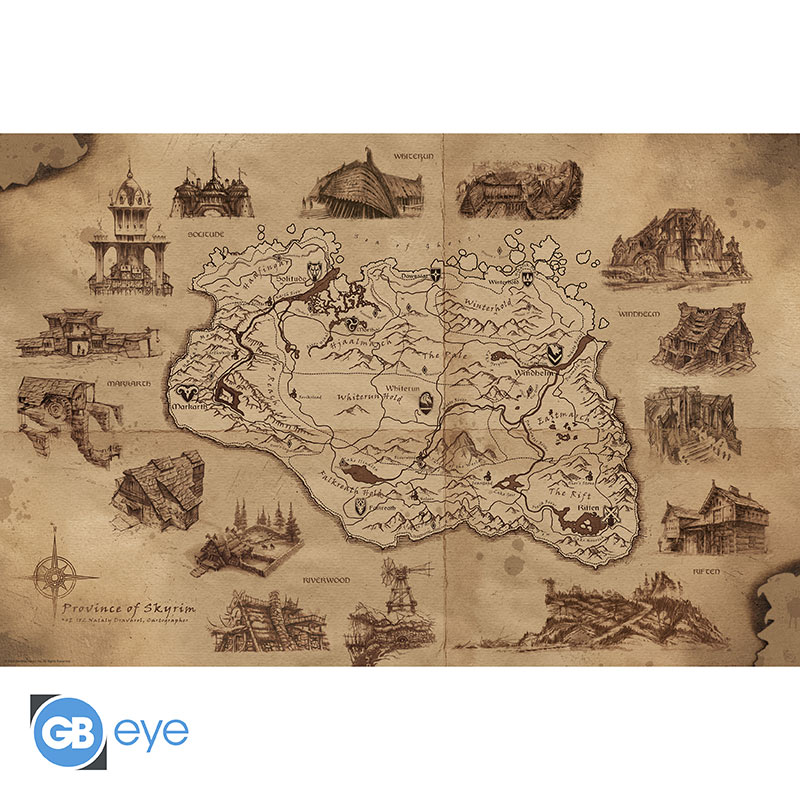 Maxi Posters. SKYRIM – Poster Maxi 91.5 1 – “Illustrated Map”*. licenza 100% ufficiale GB eye.