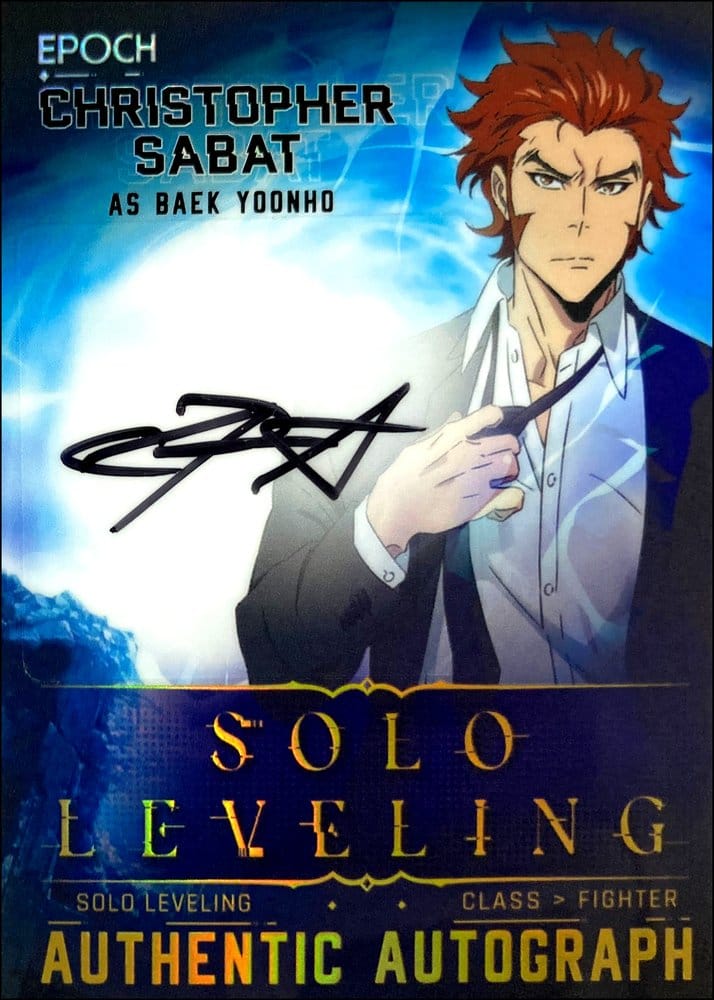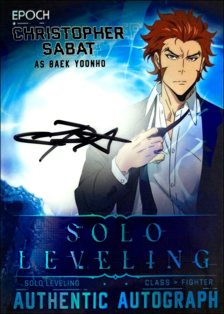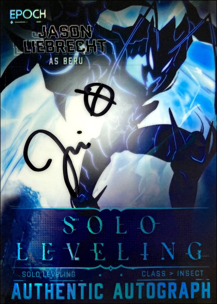 – **Voice Actor Autographs:** Find hand-signed autograph cards from Aleks Le (Sung Jinwoo), Christopher Sabat (Baek Yoonho), and Jason Liebrecht (Beru), with various numbering tiers down to 50 or less.