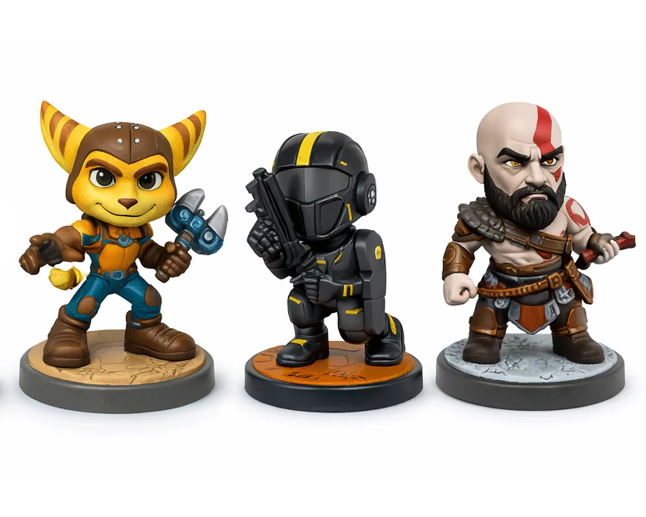 La serie include Aloy, Astro Bot, Jin Sakai, Ratchet, un Helldiver e Kratos, reinterpretati in formato compatto e altamente dettagliato, perfetto per collezionisti e appassionati del mondo PlayStation.