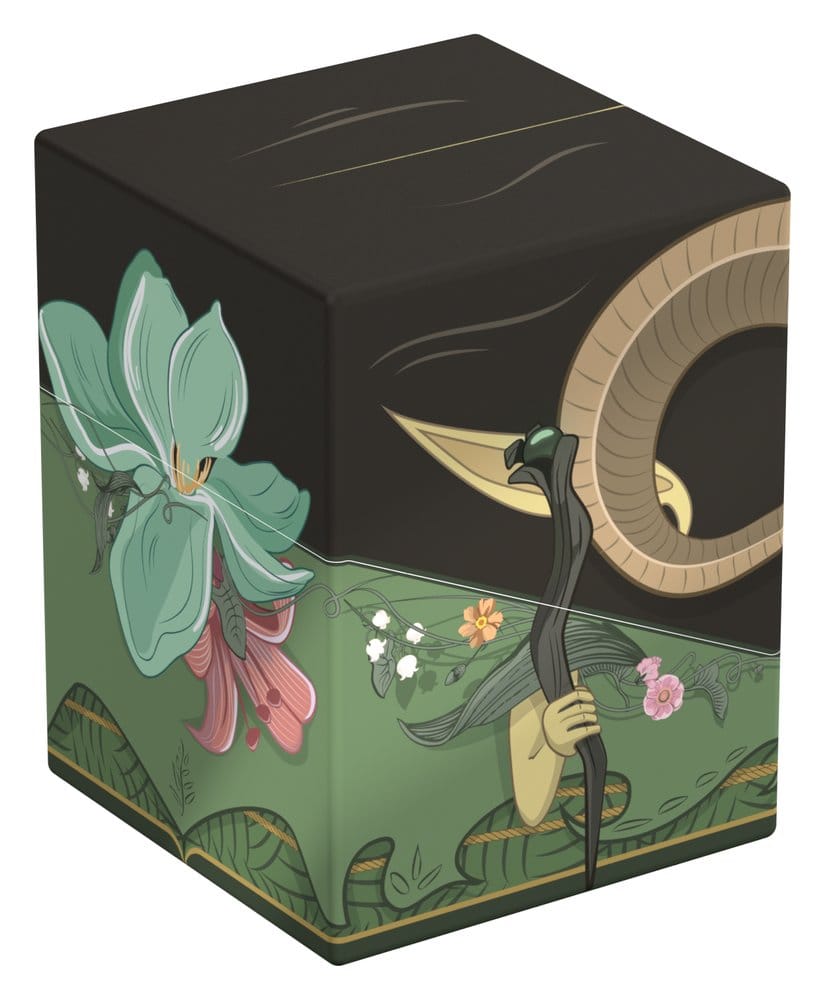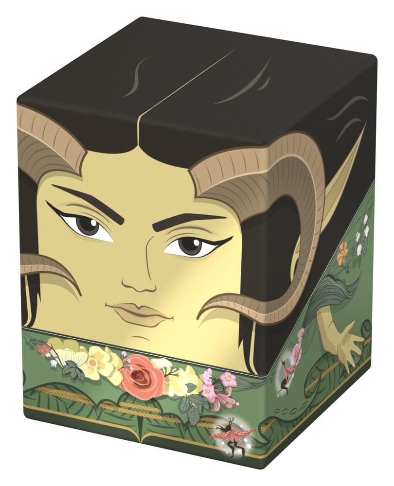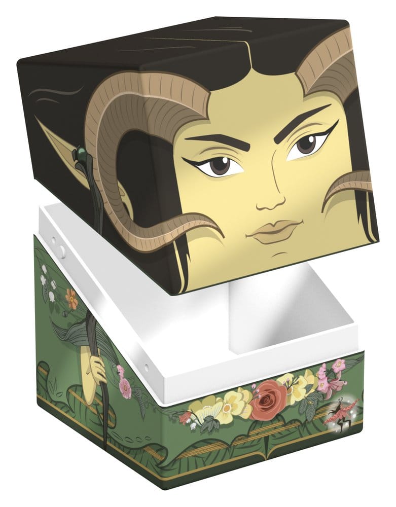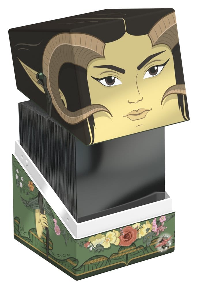 Collectible box for storing TCG decks, tabletop gaming accessories, and/or collectibles. The Maralen Squaroe from the Magic: The Gathering edition holds up to 100 cards in double protective sleeves if used as a deck box. Squaroes are made from 78% renewable recources.