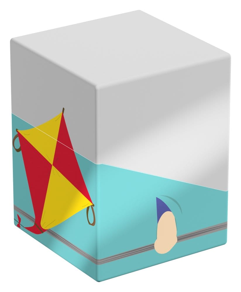 Collectible box for storing TCG decks, tabletop gaming accessories, and/or collectibles. The Human Kite Squaroe from the South Park™ edition holds up to 100 cards in double protective sleeves if used as a deck box. Squaroes are made from 78% renewable resources and fit perfectly into the separately available Collectors Case.