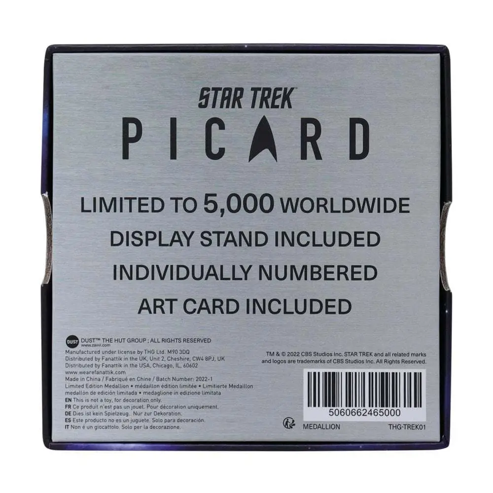 Onorate il leggendario Capitano della Flotta Stellare Picard con questo medaglione in metallo in edizione limitata del suo blasone di famiglia. Limitato a 5.000 esemplari in tutto il mondo, numerato individualmente e fornito con un supporto da esposizione nella sua scatola di presentazione.