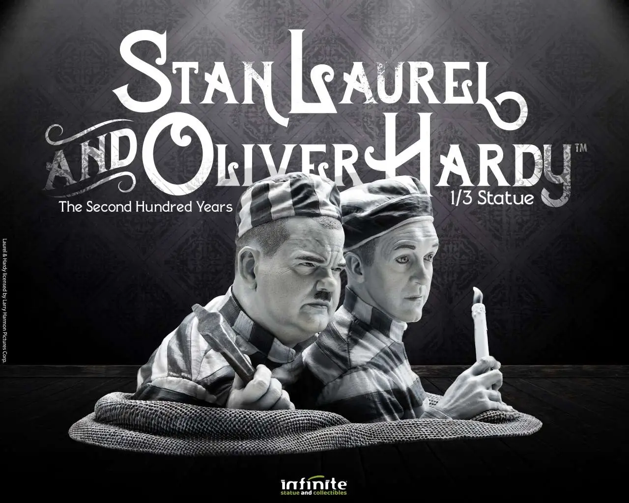 Dal duo comico Laurel&Hardy in uno dei loro cortometraggi più famosi “The Second 100 Years” del 1927, Infinite Statue & Collectibles dedica ai due grandi della risata questa spettacolare statua. In resina dipinta a mano con grandi dettagli, Stan Laurel & Oliver Hardy 1/3 Statue è un omaggio artistico ispirato alle gag comiche e all’intramontabile umorismo di Stan Laurel e Oliver Hardy, e li cattura con dinamicità e iperrealismo in una originale ed esclusiva scultura 3D. Edizione Limitata.