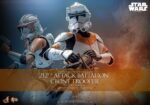 Sideshow and Hot Toys are thrilled to introduce the 212th Attack Battalion Clone Trooper™ Collectible Figure (Deluxe Version) Sixth Scale Figure – a release with additional accessories to enhance display options. This Deluxe Version includes two finely crafted interchangeable helmets, and a set of weathered white armor accented with the unit’s signature orange markings, paired with a utility belt, and boots. To prepare the Clone Trooper for any mission, weapons such as a DC-15A blaster rifle and DC-15S blaster carbine are included. The Deluxe Version also offers extra heavy weaponry, including a Z-6 rotary blaster cannon and a mortar that can be attached to the trooper’s back. In addition to the macrobinoculars, this Deluxe release features helmet macrobinoculars to enhance display options. Accessories includes a couple of newly developed tactical gear that magnetically attaches to the back plate of the trooper’s armor – including thermal detonators, utility pouches, and radio, allowing fans to recreate a wide range of combat-ready displays. With seven interchangeable hands and a specially designed sand-themed figure stand, the trooper is ready to defend the Republic.