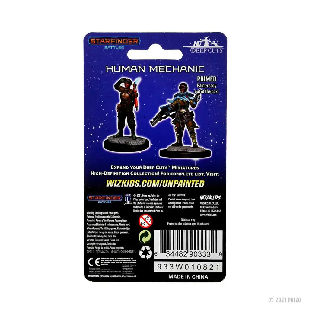 STARFINDER DEEPCUTS UNPAINTED MINIATURES: HUMAN MECHANIC – Miniature in resina plastica pre primerate con colori acrilici Vallejo ed inserti componenti in plastica trasparente. Utilizzabili in Starfinder e tutti i giochi di ruolo di ambientazione fantascientifica