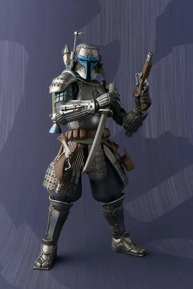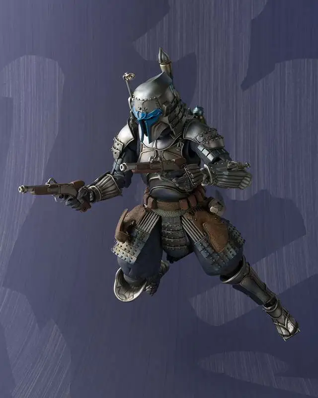 Nuova proposta di Bandai per la serie Meisho Movie Realization: ecco Ronin Jango Fett! La figura dispone di articolazioni e ha ottimi dettagli. Nella scatola troverete anche due pistole, una spada e numerose mani intercambiabili.
