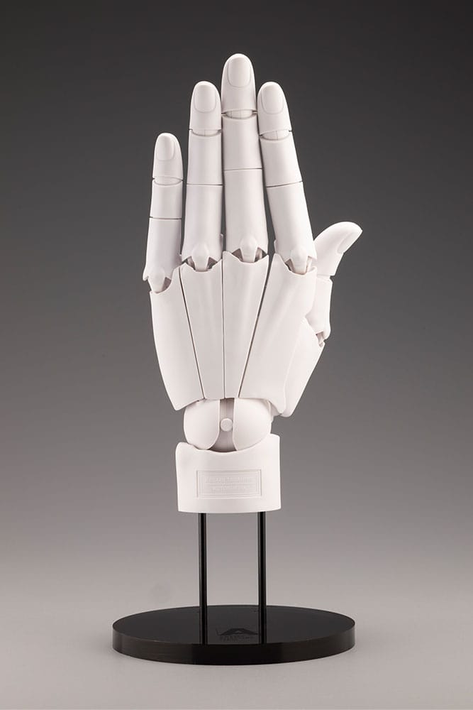 This is a tool from the manufacturer Kotobukiya. The product, named ‘Artist Support Item Hand Model/L -White-‘, is a detailed collectible for fans.