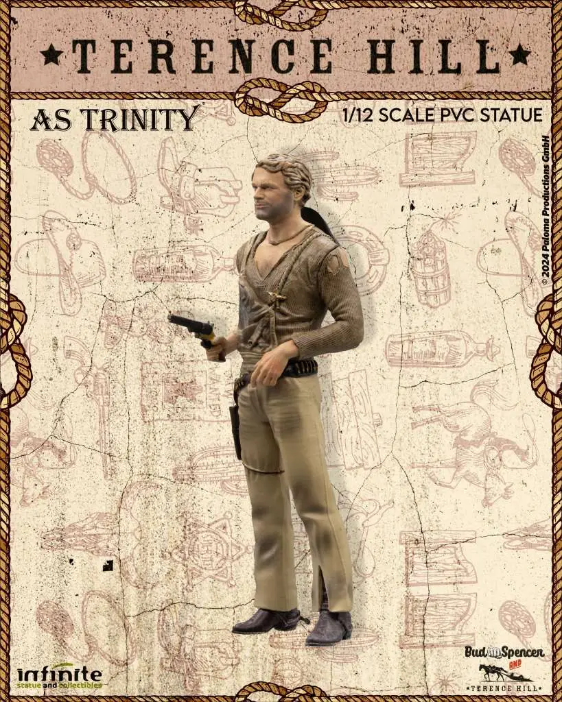 Dopo il grande successo delle statue in resina in scala 1/6, Infinite Statue & Collectibles è entusiasta di presentarvi la nuova collezione di mini statue in PVC in scala 1/12, dedicate ai leggendari Bud Spencer e Terence Hill! Rappresentati nei loro famosi ruoli di Bambino, Banana Joe, Bulldozer e Trinità, questi personaggi affascinano e divertono in una versione ancora più compatta. Ogni miniatura, ricca di dettagli e carattere, è perfetta per i collezionisti e gli amanti del cinema. Non perdere l’occasione di portare a casa un pezzo della storica amicizia che ha fatto ridere generazioni intere!