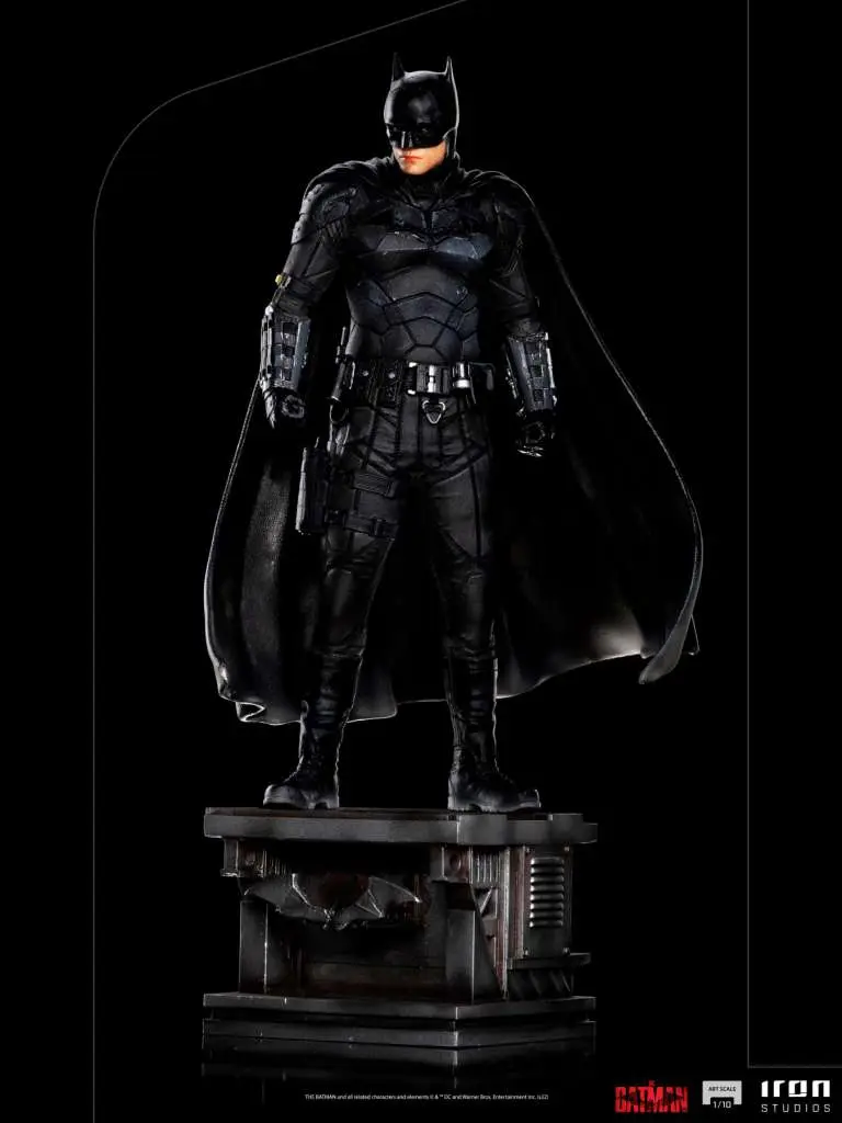 Direttamente dal nuovo film dedicato a Batman arriva da Iron Studios l'immancabile resina in scala 1/10 dedicata al nuovo uomo pipistrello. Sul piedistallo che riprende lo stile architettonico di Gotham, si erge Robert BATMAN Pattinson nel suo inedito costume