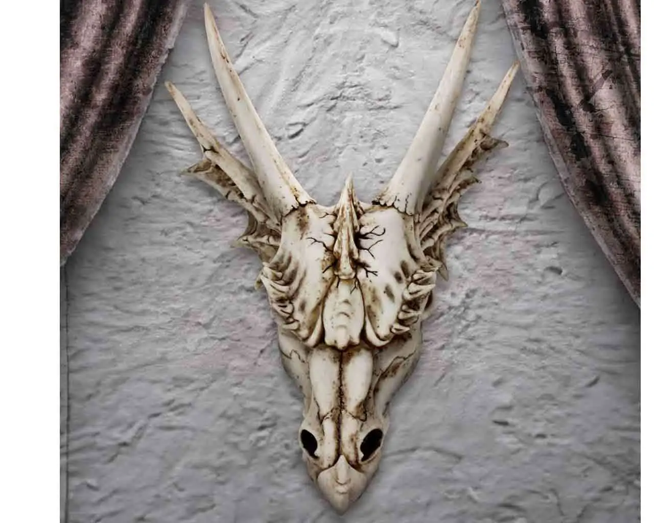 Che sia alla parete del vostro salotto, o al muro del vostro negozio, o sopra il tavolo del vostro pub preferito, questo stupendo teschio di drago in resina dipinta a mano, farà un figurone e sarà il punto di attrazione principale.