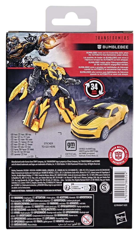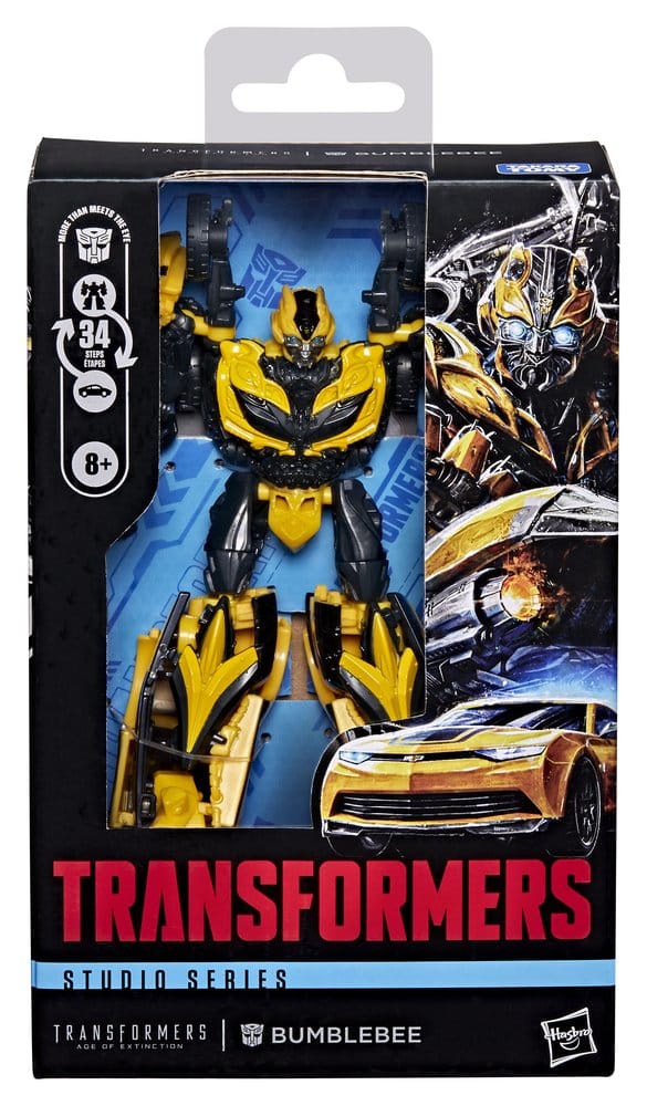 Experience the epic action of Transformers: Age of Extinction with the Transformers Studio Series Bumblebee action figure. The 5-inch (12.5 cm) figure converts from robot to Chevy Camaro mode in 34 steps. With movie-inspired details, intricate poseability, and attachable blaster accessory, this Bumblebee toy makes an awesome addition to any collection. Look for more Transformers collectible toys (sold separately, subject to availability) featuring favorite characters like Optimus Prime, Soundwave, Megatron, and more to create a lineup that is – More Than Meets the Eye.