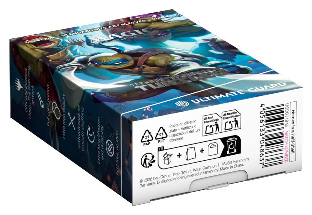 Ultimate Guard Art Sleeves are premium MTG sleeves featuring officially licensed artwork from the Magic: The Gathering |Teenage Mutant Ninja Turtles set. Their textured back offers an outstanding shuffle feel, paired with vibrant, scratch-resistant printing and a highly transparent front. Crafted from high-quality materials, Art Sleeves guarantee maximum durability.