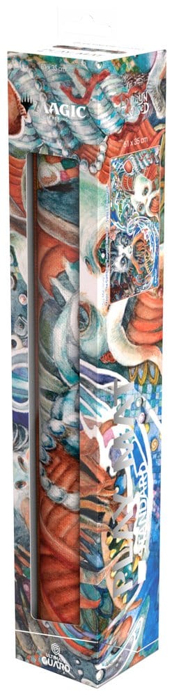 Ultimate Guard’s Play-Mat Standard, featuring officially licensed artwork from Magic: The Gathering’s “Lorwyn Eclipsed” set, is a high-quality, 61 x 35 cm MTG playmat that enhances the gaming experience and protects MTG cards, sleeves, and accessories from scratches, wear, and dirt. The 2 mm thick, soft-cushioned playmat is made from natural rubber and features Ultimate Guard’s trusted anti-slip underside and a high-quality, soft fabric surface. The gaming mat’s stitched edges prevent fraying and ensure long-lasting durability.