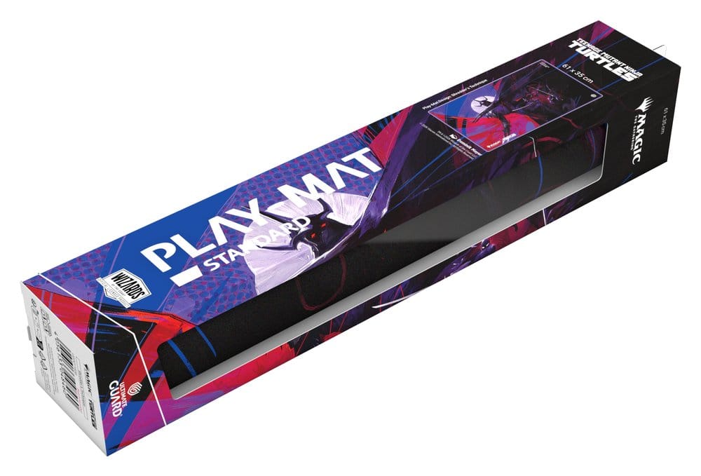 Ultimate Guard’s Play-Mat Standard, featuring officially licensed artwork from the “Magic: The Gathering | Teenage Mutant Ninja Turtles” set, is a high-quality, 61 x 35 cm MTG playmat that enhances the gaming experience and protects MTG cards, sleeves, and accessories from scratches, wear, and dirt. The 2 mm thick, soft-cushioned playmat is made from natural rubber and features Ultimate Guard’s trusted anti-slip underside and a high-quality, soft fabric surface. The gaming mat’s stitched edges prevent fraying and ensure long-lasting durability.