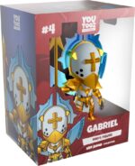 The will of the council has sent Gabriel to Youtooz to bring around our righteous destruction! Wait a minute… Standing at 5.4 inches tall and holding a long pointed spear to his right side, a pale helmet covers his head with three holes on either side and a gold cross at the center, which matches the pointed chin and band running around its back. With a pointed blue halo reaching up from his head and curved wings extending from each shoulder, vibrant gold armour covers his body with thick pauldrons and sturdy boots as a waist cloth blows to the side. The exterior of his packaging sees him kneeling in a bright circle of light, while the interior looks into a dimly lit red throne room. The protective sleeve is then covered with a fleshy red membrane, as his figure can be seen through the large, clear window at the packaging’s front. This collectible ships in a matte, embossed, protective outer sleeve and a custom-sized plastic protector for maximum protection during shipping.