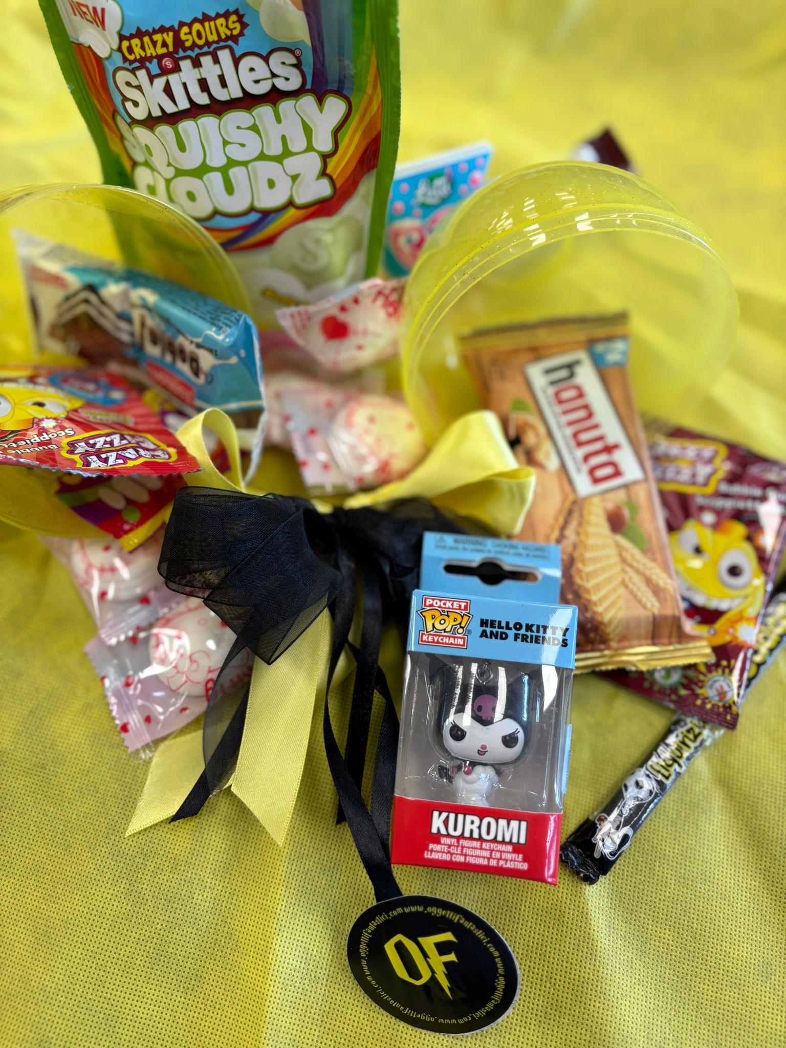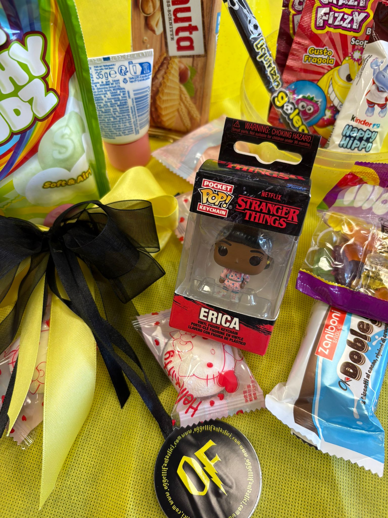 All’interno di questo uovo trasparente troverai una selezione di prodotti assortiti pensati per rendere l’apertura ancora più emozionante: snack golosi, dolciumi e piccoli gadget a tema pop culture che piacciono a bambini, ragazzi e collezionisti.