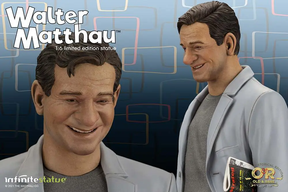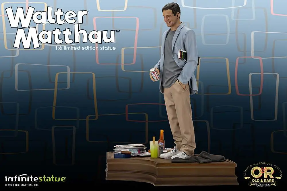 Infinite Statue aggiunge alla sua linea Old&Rare questa esclusiva statua dedicata allo straordinario Walter Matthau. La statua in resina scala 1/6 cattura la vera essenza di Walter Matthau, perfetto in somiglianza, atteggiamento ed espressione del volto, circondato da lattine e bottiglie di birra, riviste, sandwiches, posacenere e sigaro. La statua arriva in edizione limitata e può essere unita con la statua di Jack Lemmon Old&Rare e formare il set di una delle coppie comiche più famose del cinema.