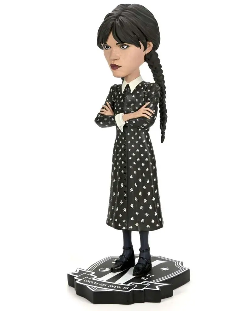 Nuova uscita per la bella linea di Headknockers di Neca! Ecco Mercoledì, dalla serie Tv omonima! La statuina è in resina, è dipinta a mano e super dettagliata. Come tutti gli headknockers ha la testa dondolante. Da non perdere!